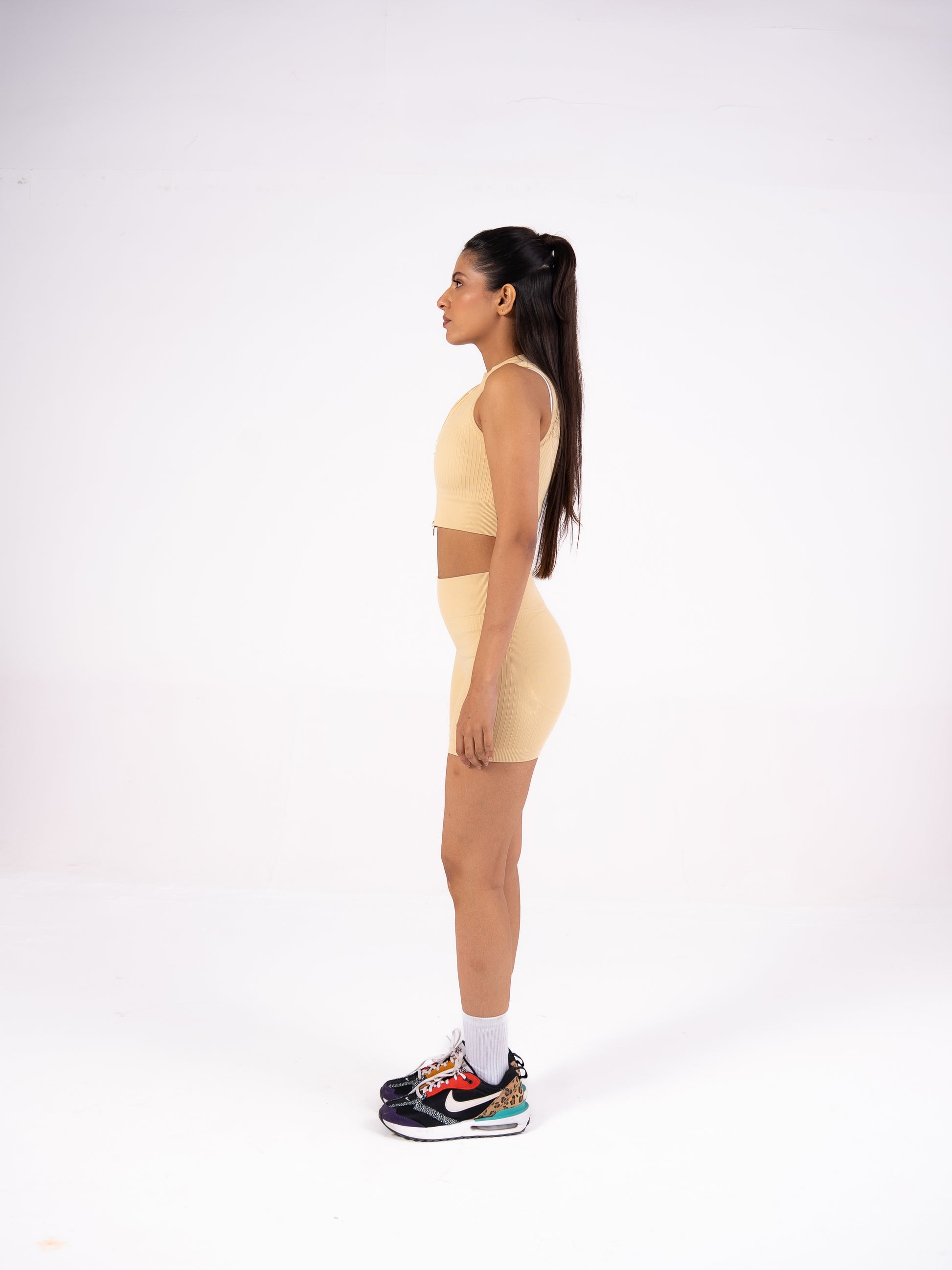 The cuts create a bold, bar-inspired silhouette—elevated enough for a night out, yet engineered for every rep, stretch, and stride. Whether you’re lifting, flowing, or lounging, the Shaker Top holds you in without holding you back.